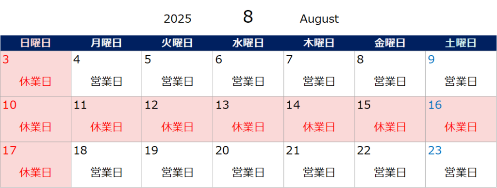 さて、弊社ではお盆期間に関しまして下記の通り休業いたしますので、ご案内申し上げます。