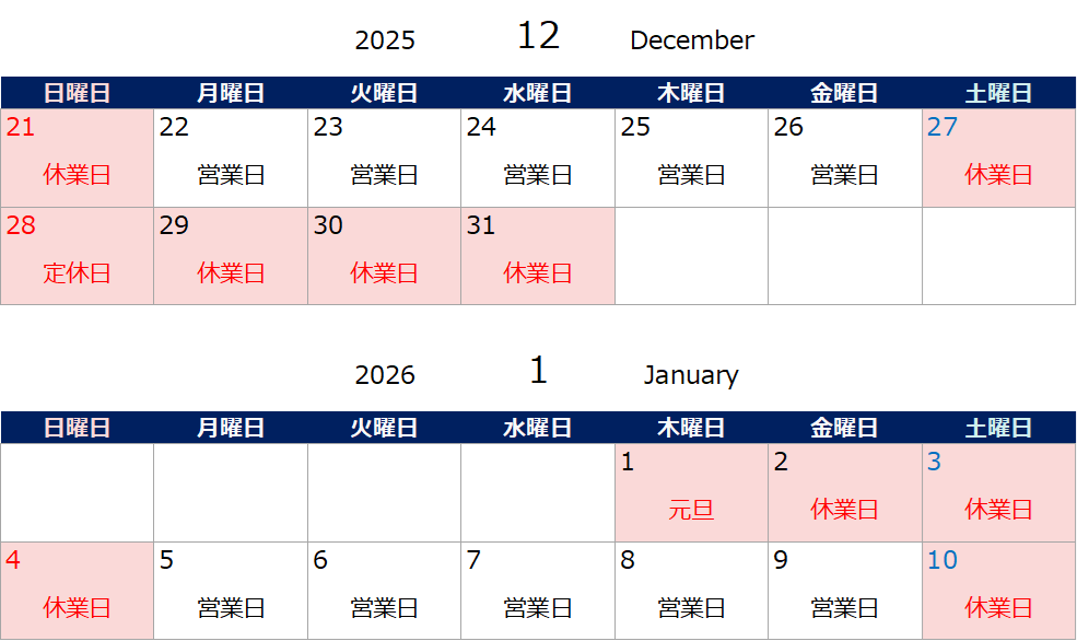 なお、休業前にいただきましたお問い合わせやご応募につきましては、休業明けの営業日より順次対応させていただきます。